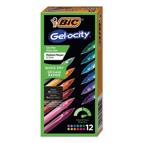 BIC Gel-Ocity Quick Dry Retractable Gel Pen, 0.7mm, Assorted Ink-barrel, Dozen