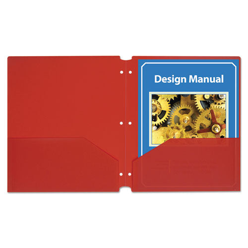 Two-pocket Heavyweight Poly Portfolio Folder, 3-hole Punch, Letter, Red, 25-box