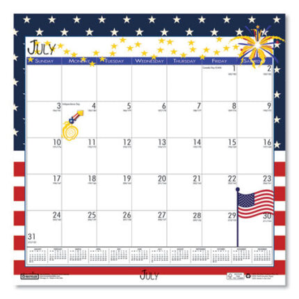 Colorful enthusiastic monthly images depicts each month’s special holiday and season with bright lively designs throughout the page. Full 12-month