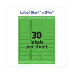 Have something important to say? Customize your white labels with attention-getting images or make your most important messages stand out with high-visibility color labels. Ideal for announcements, priority messages, addressing, color-coding, identification/warning labels and more! Easy to customize with free templates from Avery® Design & Print. For laser printers. Now you’ve got their attention. Laser Permanent Neon Rectangular Labels with Sure Feed€”Ensuring a reliable printer feed. Shape: Rectangular; Label Size – text: 1 x 2.63; Label Color(s): Neon Green; Color Family: Green.