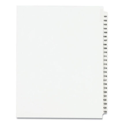 AVERY Preprinted Legal Exhibit Side Tab Index Dividers, Avery Style, 25-tab, 101 To 125, 11 X 8.5, White, 1 Set, (1334)