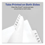 Rip Proof reinforced, dual-sided, laminated tabs make it easy to organize your information. The binding edge is unpunched, so these dividers can fit practically any binding system. Ideal for briefs, legal exhibits, mortgage documentation files and more! Avery® Style is Helvetica bold type style and Allstate® Style is Helvetica regular type style. Collated, 11 x 8.5, Side Tab. Index Divider Style: Legal Arabic Numeric; Index Divider Size: 11 x 8.5; Punched/Unpunched: Unpunched; For Use With: Comb Binding Systems.
