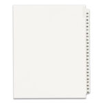 Rip Proof reinforced, dual-sided, laminated tabs make it easy to organize your information. The binding edge is unpunched, so these dividers can fit practically any binding system. Ideal for briefs, legal exhibits, mortgage documentation files and more! Avery® Style is Helvetica bold type style and Allstate® Style is Helvetica regular type style. Collated, 11 x 8.5, Side Tab. Index Divider Style: Legal Arabic Numeric; Index Divider Size: 11 x 8.5; Punched/Unpunched: Unpunched; For Use With: Comb Binding Systems.