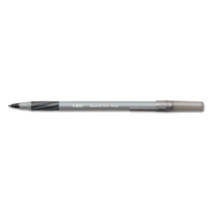BIC Round Stic Grip Xtra Comfort Stick Ballpoint Pen, 1.2mm, Black Ink, Gray Barrel, Dozen