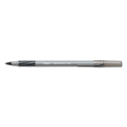 BIC Round Stic Grip Xtra Comfort Stick Ballpoint Pen, 0.8mm, Black Ink, Gray Barrel, Dozen