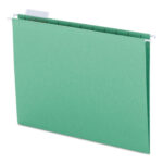 Hanging folders keep papers neatly vertical in their files. No more slumping folders or folders that slip under one another. Vivid colors help you code files for quick, easy identification. The poly tabs are all clear with a white insert. Folder Size Type: Letter; Folder Color: Green; Color Family: Green; Folder Material: 11-pt Stock.