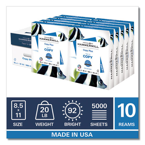 Copy Plus Print Paper, 92 Bright, 20 Lb, 8.5 X 11, White, 500 Sheets-ream, 10 Reams-carton