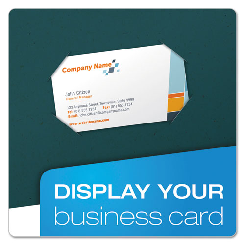 Earthwise® and functional. Die-cut business card holder on inside front pocket. Front Cover Color(s): Blue; Color Family: Blue; Back Cover Color(s): Blue; Sheet Size: 11 x 8.5.