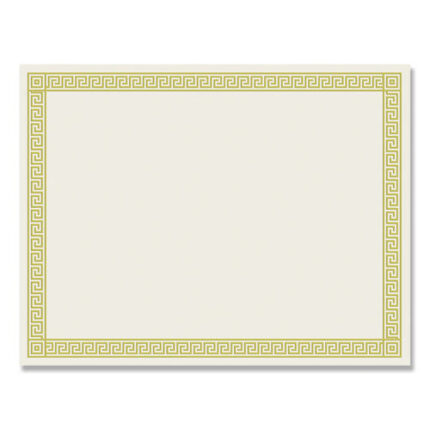 Use to create recognition of achievements. Can be used with inkjet or laser printers, copiers, quick printing, typewriters and calligraphy. For use with Geographics document covers. Compatible with all major software programs. Each has parchment finish. Parchment Paper with Gold Foil Seals. Theme: Optima; Shape: Rectangular; Width: 8.5″; Height: 11″.