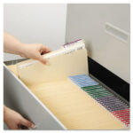 Reinforced tabs provide extra strength where you need it most. An office necessity in a variety of tab cuts for every filing need. File Folder Size Type: Letter; File Folder Color: Manila; Color Family: Manila; File Folder Material: 11-pt Manila.