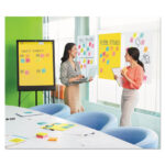 When floor space for an easel stand is limited use Post-it® Wall Pads. Smaller and lighter than full-size easel pads, they mount on walls, doors or windows with Command Strips. Turn any space into a temporary meeting space. The bright white sheets resists marker bleed-through; they stick to most surfaces and can be repositioned again and again, without surface damage. Book/Pad Binding Type: Stapled; Book/Pad Binding Edge: Top; Book/Pad Sheet Size: 20 x 23; Book/Pad Subjects/Sections: 1.