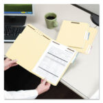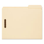 Hold papers securely and keep them in order with fasteners. Fasteners provide separate filing surfaces. Reinforced tabs for extra durability. 11 pt. Manila. File Folder Size Type: Letter; File Folder Color: Manila; Color Family: Manila; File Folder Material: 11-pt Manila.