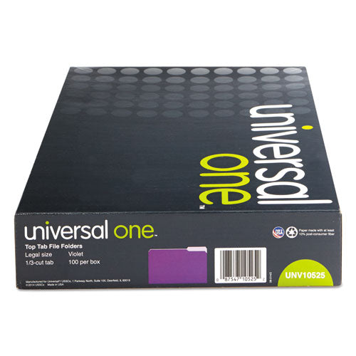 UNIVERSAL Deluxe Colored Top Tab File Folders, 1-3-cut Tabs, Legal Size, Violet-light Violet, 100-box