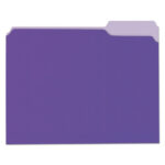 Bright color€”great for color-coding and preventing misfiles. Constructed of high-quality 11 pt. stock to resist tearing. Bottom is triple-scored for 3/4″, no-sag expansion. Undercut at tabs. File Folder Size Type: Letter; File Folder Color: Violet/Light Violet; Color Family: Purple; File Folder Material: 11-pt Stock.